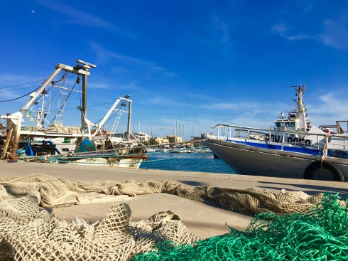 Massimo explained that they prepare the boats each afternoon and head out to sea at 11:30 pm. They sweep, or drop the nets, usually three times, then return home the following day at 3:30 in the afternoon. When they return, they stop at the end of the pier to unload the day’s catch. The fish is weighed and immediately taken to auction. Len had some other fishing questions, including how often. “Five days a week.” Obviously, fishing is not a hobby here.