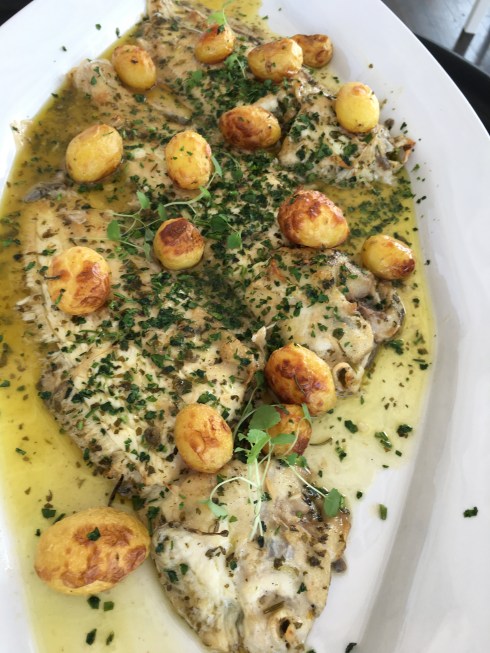 followed by sautéed sole and roasted potatoes.