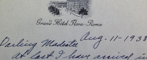 I came to Rome to visit Benita. What a perfect excuse to visit Italy for a week. While she was in class, my first day was filled with monuments, piazzas, and yes, walking in my grandfather’s footsteps. At the very end of Via Veneto, across from Harry’s Bar, is the Grande Hotel Flora, where he stayed for five nights in August of 1938. (More on his time there when I get to those letters.)  It is now owned by Marriott, and fortunately, they have been very attentive to the history and original detail of the hotel.